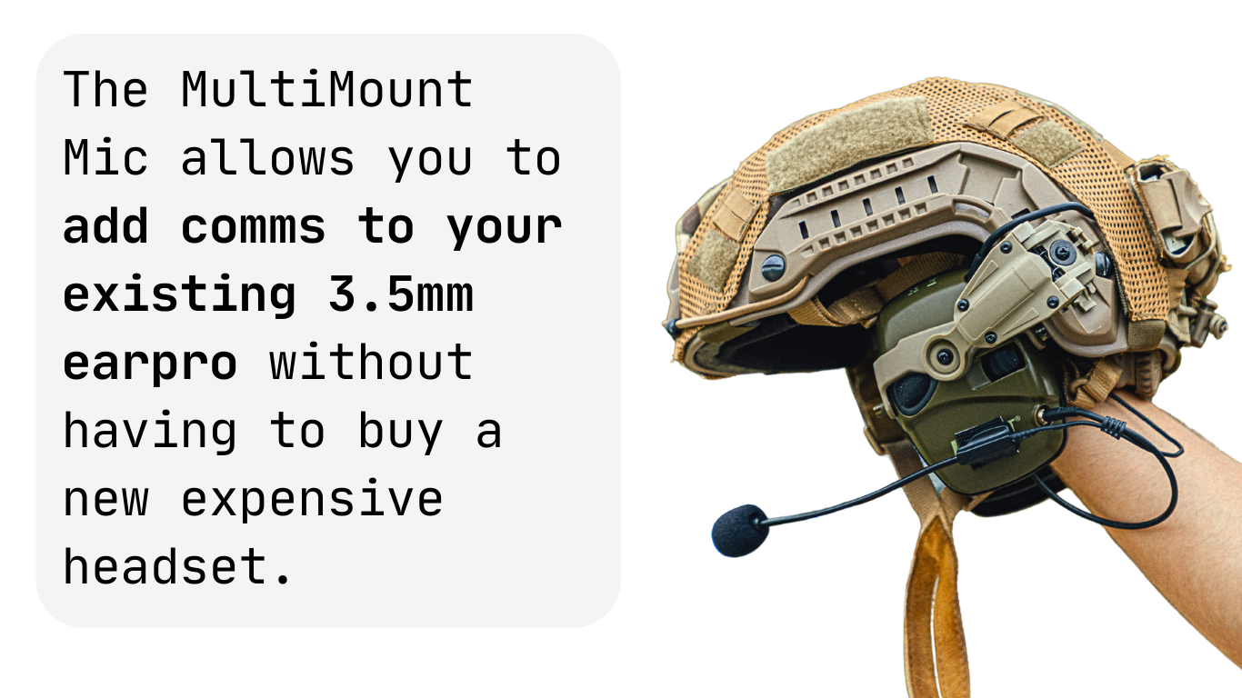 Upgrade your hearing protection with the MultiMount Mic, a versatile microphone designed to seamlessly turn your headset or helmet into a high-performance communication system. Whether you’re in the field or at the range, this easy-to-install solution ensures clear communication when paired with our MultiMount Mic PTT systems.